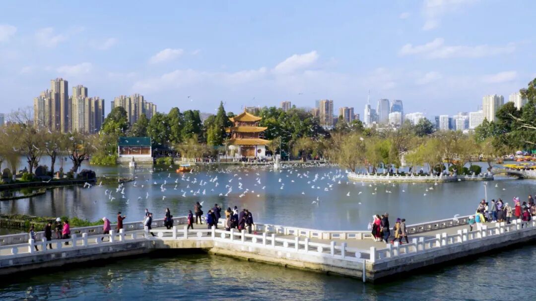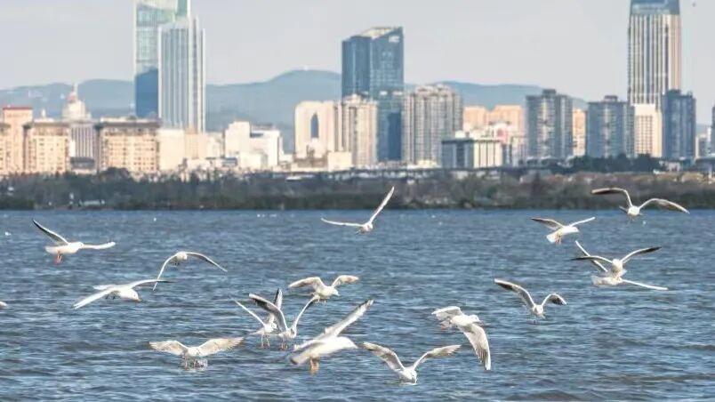 每年冬天,红嘴鸥翔集,它们在这里沐浴着阳光,感受着独属于昆明的温暖。