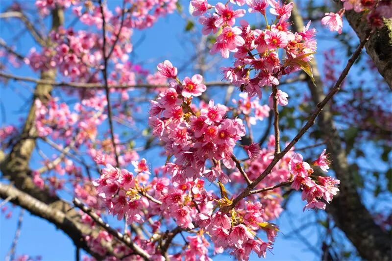 在暖洋洋的日光里,楚雄迎来了冬樱花的盛开,为这座城市增添了一抹温暖的色彩。