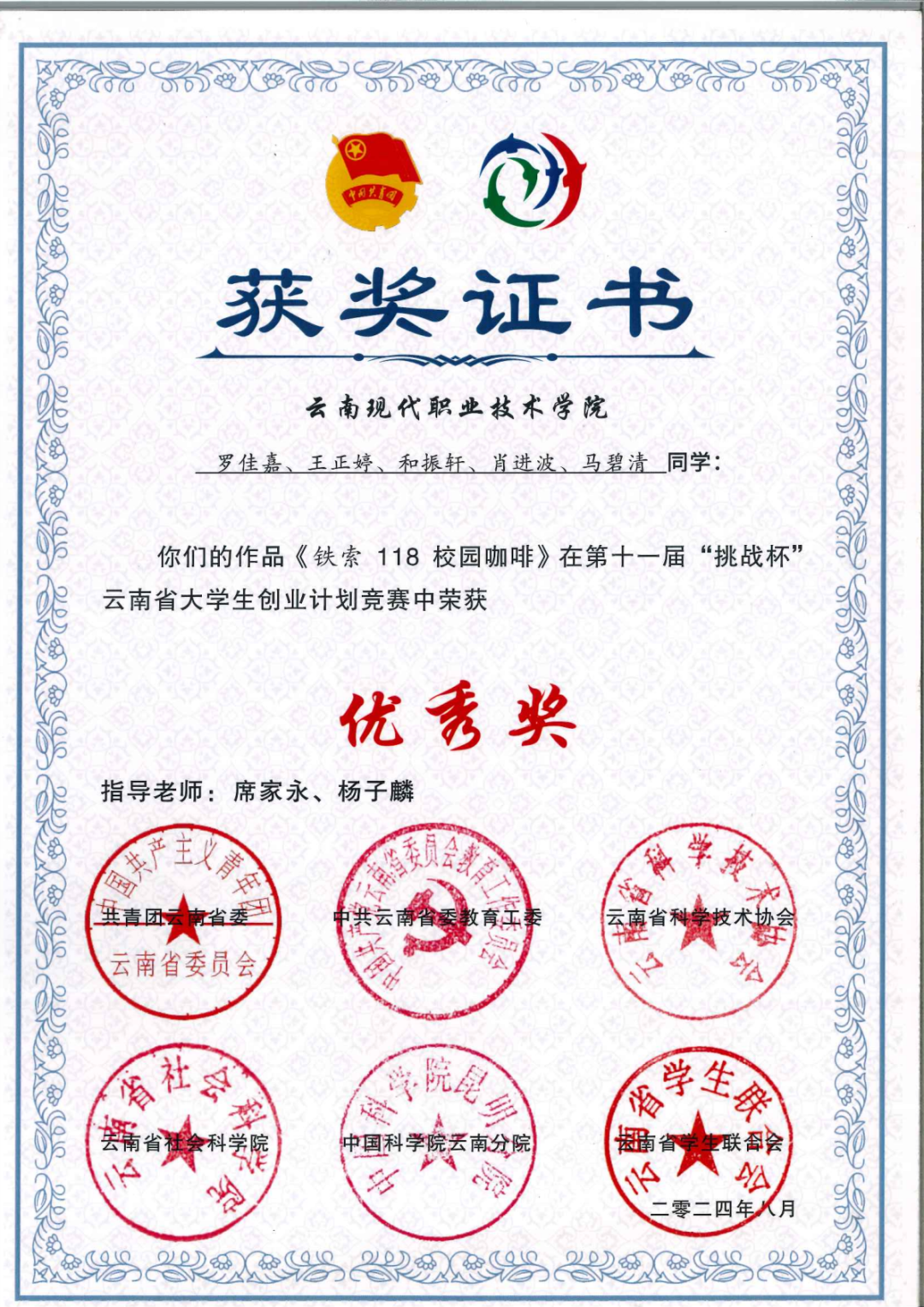 2024年,楚雄技师学院 云南现代职业技术学院共获得各类双创大赛奖项12项,其中省级9项、州级2项;省级金奖1项、省级银奖2项、省级铜奖4项、省级优秀奖3项、州级二等奖1项、州级三等奖1项。