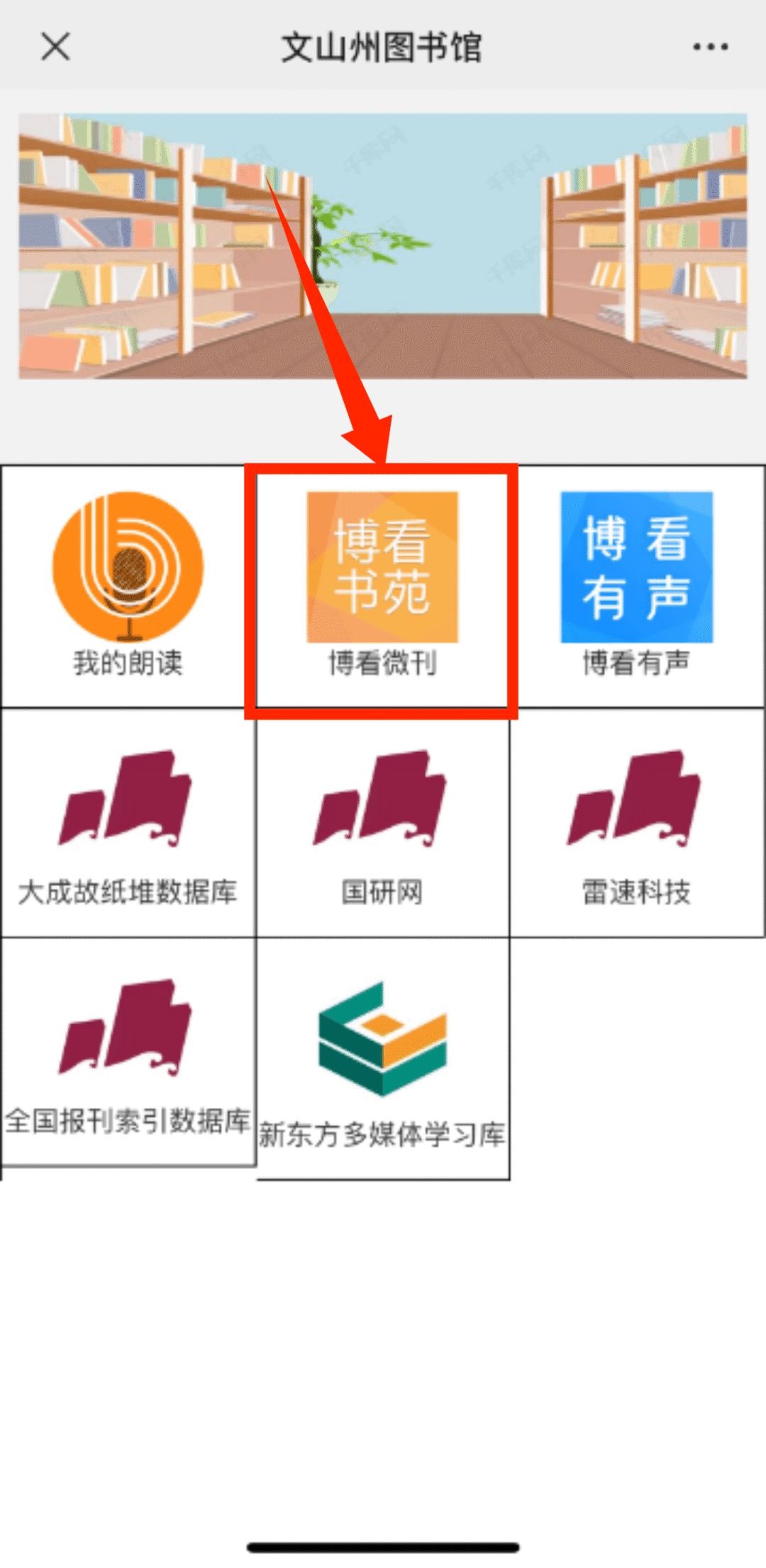 1.通过“文山州图书馆”微信公众号进入“云悦读-博看声阅-博看微刊”,点击首页“新春旧忆:老照片里的春节”照片征集活动轮播图,识别其中小程序码,进入活动页面。