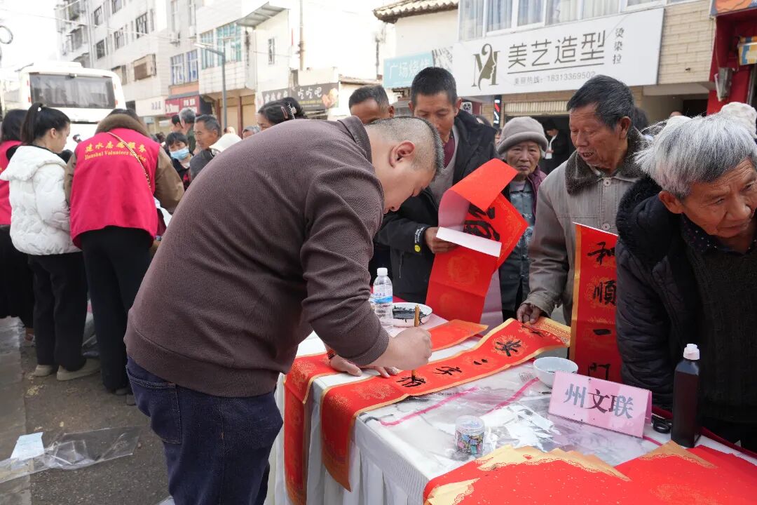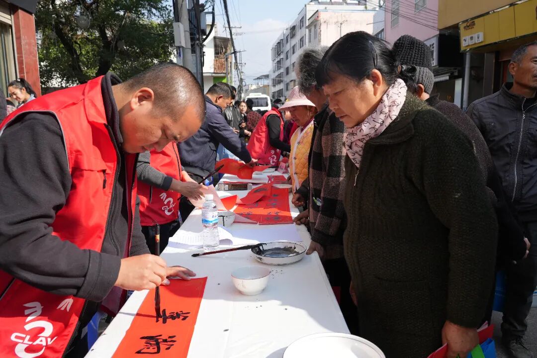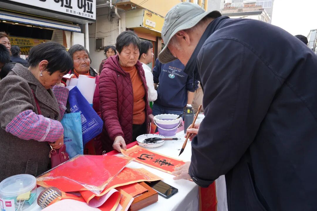 宣传展位上,书法爱好者们挥毫泼墨,现场为群众书写春联和“福”字。一幅幅散发着墨香的作品,不仅饱含着新春的祝福,更承载着中华优秀传统文化的魅力。一位拿到春联的大爷脸上洋溢着喜悦:“这手写春联比印刷品更有年味,感觉新年的氛围一下子就浓起来了。”