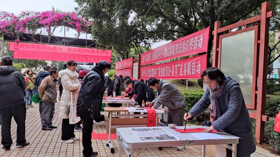 内容:新时代文明实践中心、县文化馆组织书法家书写春联,在县城小花园开展现场书写春联活动。