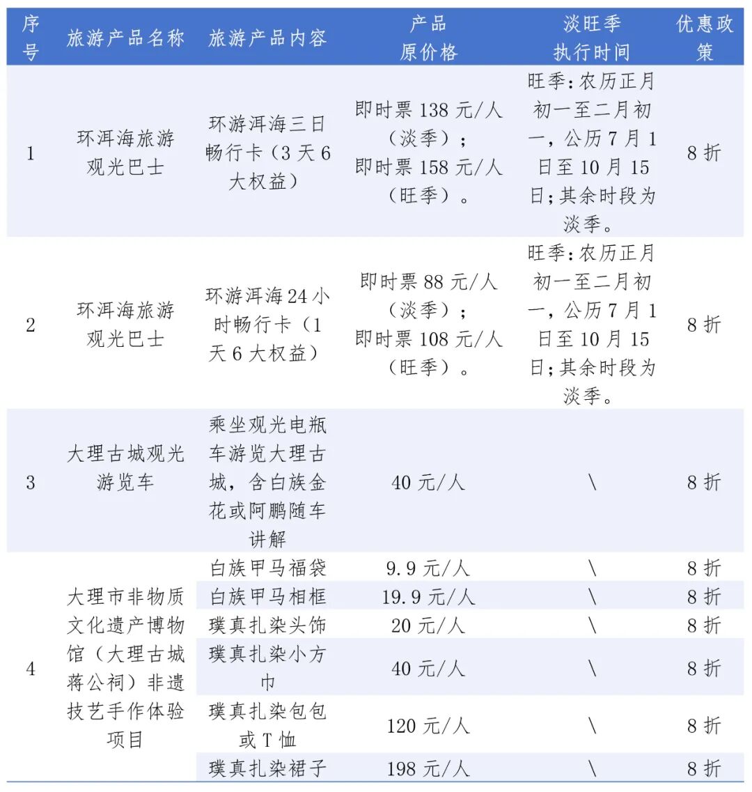 1.以上优惠产品可关注微信公众号或小程序“安心游大理”,选定产品下单;或抵达大理旅游咨询服务中心门店岗亭、环洱海巴士古城服务中心、大理古城南门游客中心现场购买,验证消费时出示本人有效证件(护照、签证或身份证)和登机牌,即可享受相关旅游产品相应的折扣优惠。