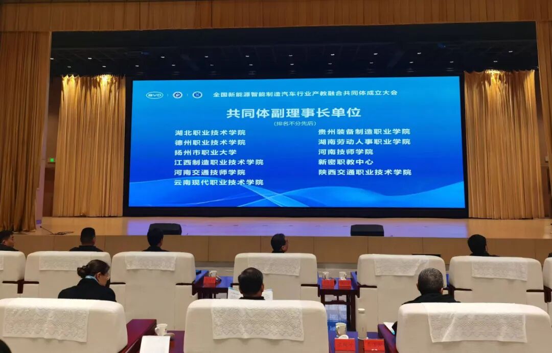 2025年1月8日,全国新能源智能制造汽车行业产教融合共同体成立大会在郑州举行,共同体的成立将加快产教融合步伐,创新人才培养体系,满足产业和企业对技能人才的实际需求,推动新能源汽车行业创新发展。共同体由比亚迪股份有限公司、河南理工大学、河南工业和信息化职业学院发起,联合全国83家科研院所、高校及新能源智能制造汽车行业上下游企业共同成立,云南现代职业技术学院被推选为共同体副理事长单位。