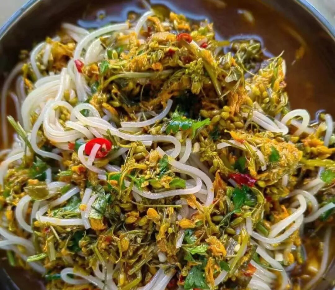 将油菜花腌制后装坛,搭配大蒜、小米辣、香菜等调料,制成一道美味的解腻小菜。这道菜不仅保留了油菜花的清香,还增添了独特的酸辣口感。