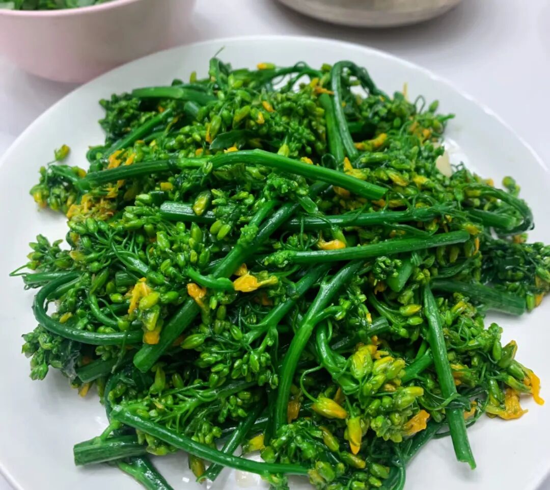 这是最简单也是最直接的吃法。将油菜花的嫩茎摘取,清洗干净后,用铁锅热油翻炒,简单调味即可上桌。这道菜不仅保留了油菜花的原汁原味,还充满了春天的清新气息。
