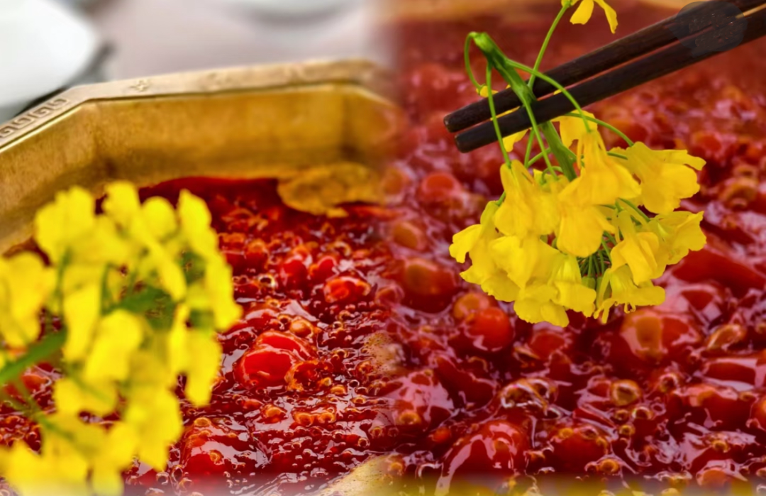 在临沧,油菜花还是搭配火锅的好食材。将新鲜的油菜花放入锅中,与滋补清汤一起烹煮,口感脆嫩,略带花香,让人回味无穷。