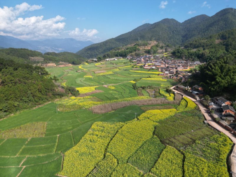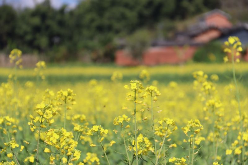 一亩金黄,一面春光,冬的脚步渐远,春的生机还未完全到达,就仿佛用笔触,将磨黑镇庆明村孔雀屏组的300余亩的大地浸染上层层明黄,让人在这花色氤氲中寻找勃勃生机。