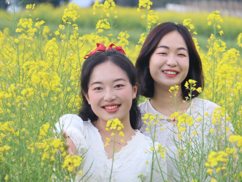 油菜花以最灿烂的“笑容”迎接每一个孔雀屏的黎明与黄昏。人们在这片金色中漫步,或驻足观赏,或拍照留念,让人在忙碌与喧嚣之外,找到一片属于自己的宁静天地。