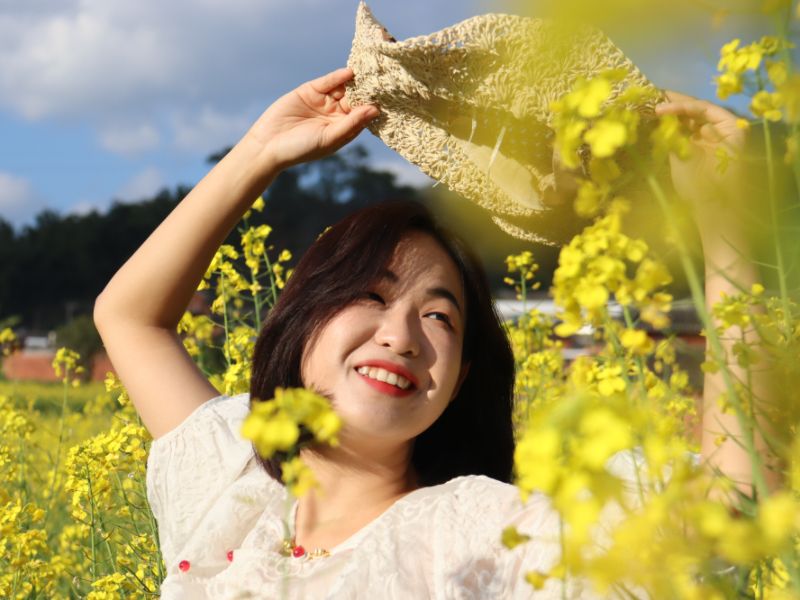 微风轻拂,在广袤的田野上,油菜花悄然绽放,织就一幅令人心旷神怡的金色画卷。远观,阳光洒在这片油菜花田上,是一片浩瀚无垠的金色海洋。微风吹过,油菜花轻轻摇曳,仿佛金色的波浪,一层层向远方荡漾开去,金色的光芒与绿色的叶片交织,形成一幅幅动人的光影画卷;近赏,每一朵油菜花都似精心雕琢的艺术品,小巧而精致,空气中弥漫着淡淡的油菜花芬芳,清新而不腻,仿佛是大自然的邀请函,引领着人们走进这片让人沉醉的金色梦境。