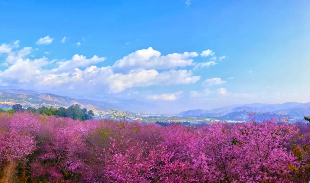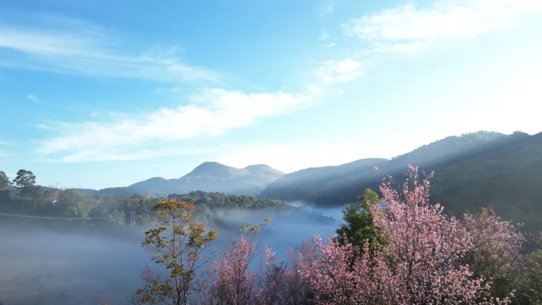 春的脚步越来越近,永德这个小城却仿佛被施了魔法,街道旁、山野里、湖边,随处可见盛开的冬樱花,粉色的花瓣在绿树的映衬下显得格外醒目,为这个冬日增添了一抹亮色。