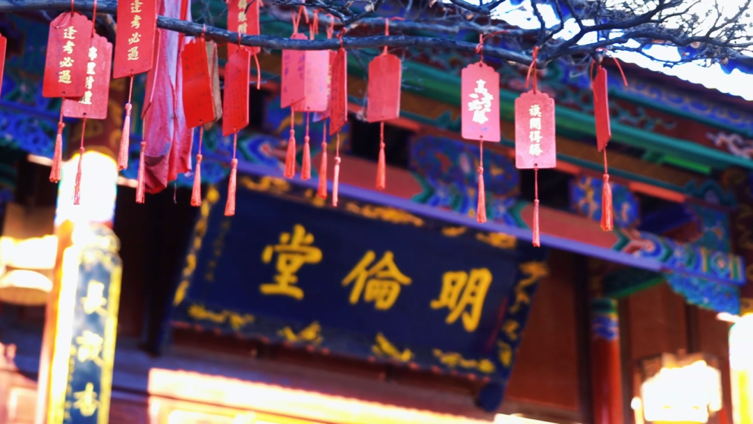 漫步在黉学庙的庭院中,阳光洒在朱红色的廊柱上,折射出历史的厚重与深沉,技艺精湛的木雕石刻讲述着孔子圣人的足迹,诠释着仁义礼智信的内涵。