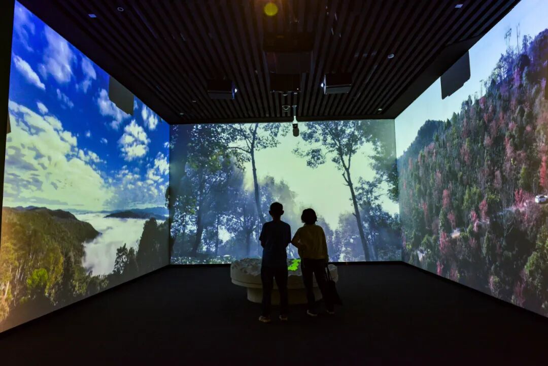 (景迈山地理空间沉浸式三联屏投影 图源:“云南省博物馆”微信公众号)