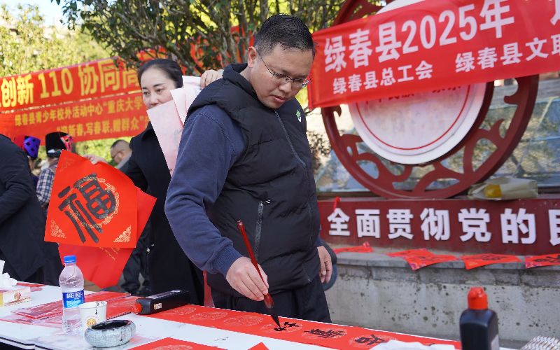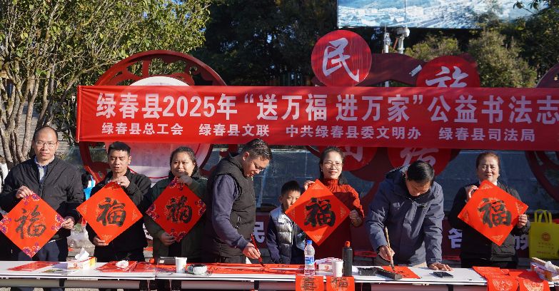 新春佳节将至,为传承中华民族优秀传统文化,丰富职工群众的精神文化生活,营造喜庆祥和的节日氛围。1月20日,绿春县总工会联合县文明办、县文联、县司法局、县融媒体等单位深入基层开展“送万福·进万家”书法公益志愿服务活动。