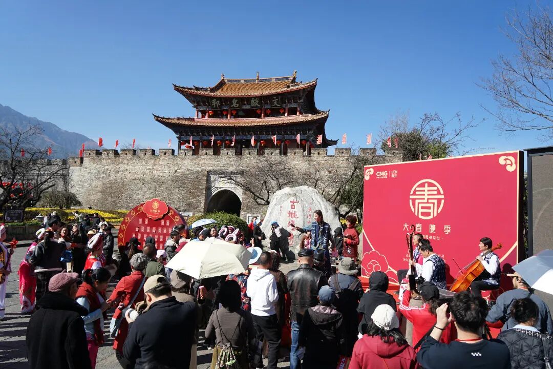 1月24日,大理古城南门广场热闹非凡,央视总台文创“大春晚季”快闪在此欢乐启幕,营造了浓浓的春节氛围。