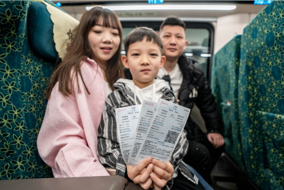 乘坐中老铁路国际旅客列车前往老挝的游客展示购买到的车票。(新华社记者 胡超 摄)
