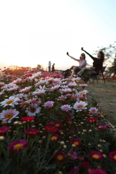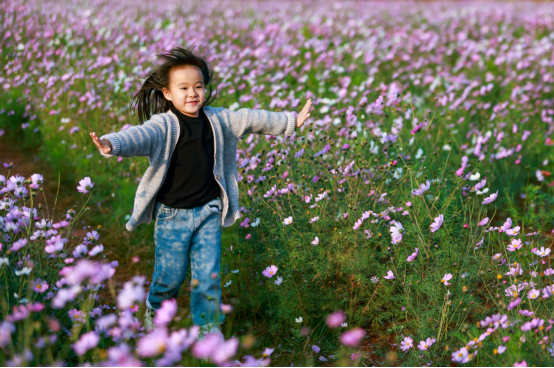 开远市凤凰生态公园,一名小朋友在花海里开心地奔跑。(陶家淇 摄)