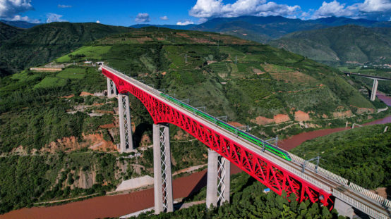 复兴号动车组列车行驶在中老铁路元江特大桥上。(徐章位 摄)
