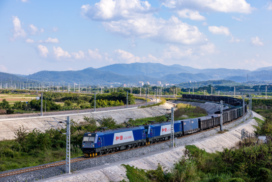 满载货物的列车行驶在中老铁路线上。新华网发(徐章位 摄)
