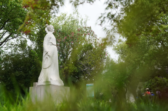 徐霞客故居仰圣园内的徐霞客塑像。(新华社记者 季春鹏 摄)