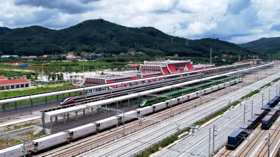客货运列车停靠在磨憨站。(殷学合 摄)