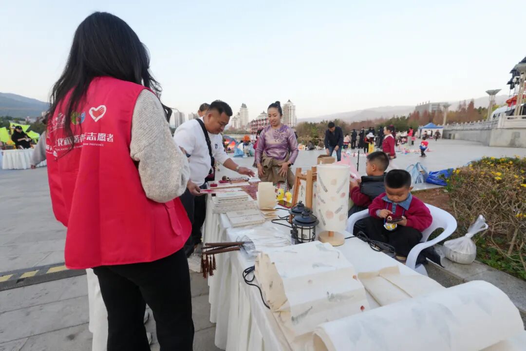 展示活动以非遗项目展板简介、非遗项目活态展示等方式相结合的形式开展。在非遗互动体验区,现场有非遗传承人指导群众参与傣族手工造纸制作、碗窑土陶拉坯金水烙印、甲马印刷术(十二生肖)等非遗技艺传承体验制作,更有现场传统爆米花制作,群众纷纷感叹“儿时的味道回来啦!”群众在现场亲身感受非遗的魅力,在热闹的氛围中感受非遗的活力与激情。