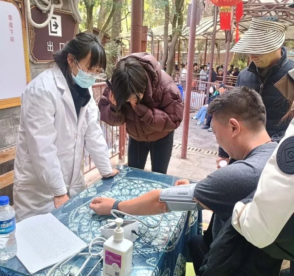 景区设立了医疗救护点,志愿者们积极协助医护人员为游客提供急救服务在游客最需要的时候及时快速的为游客提供帮助和服务。