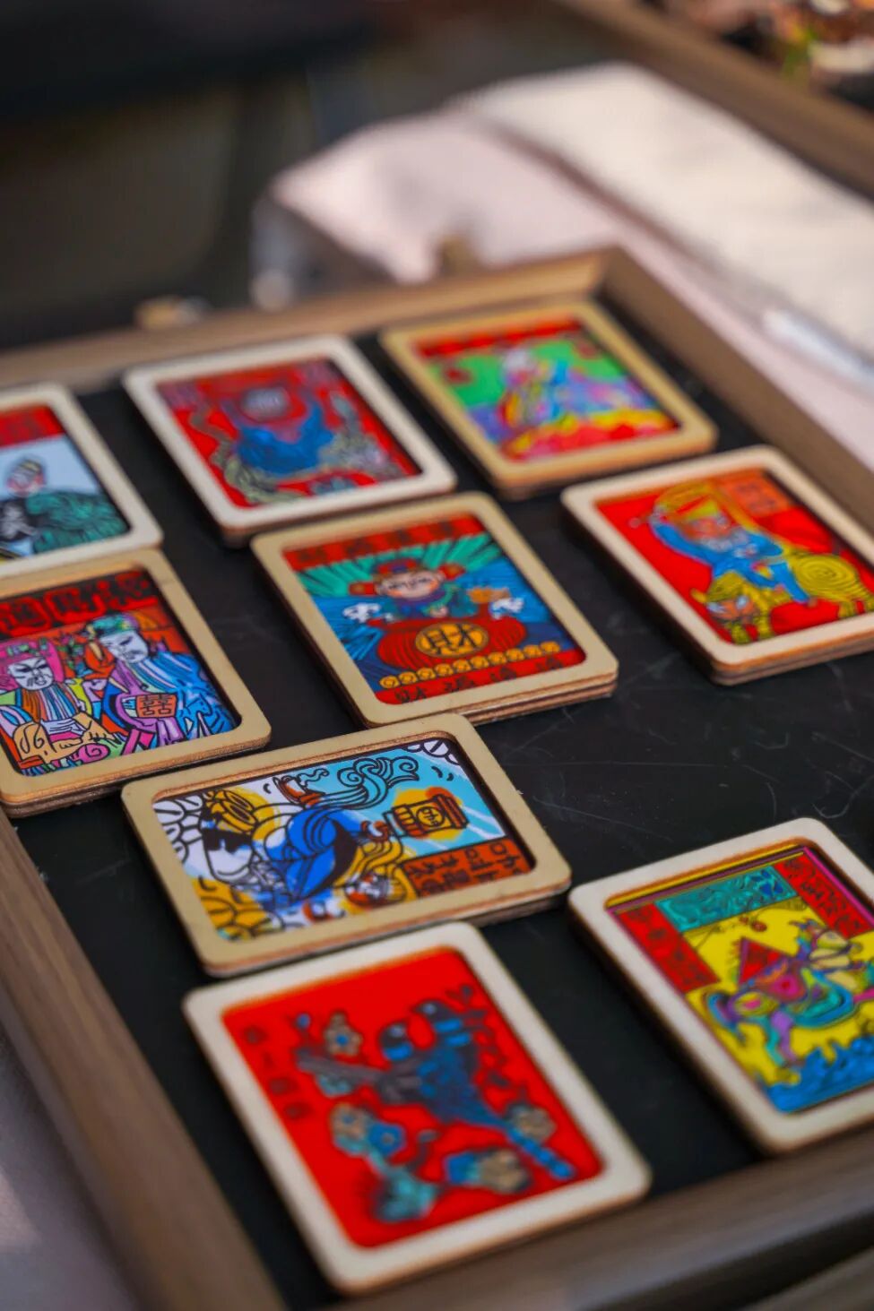 小朋友露露说:“非遗太美了,‘云千重,水千重,身在千重云水中’‘漠漠水田飞白鹭,阴阴夏木啭黄鹂’等古诗词藏在了漆扇之中;瓦猫憨态可掬,萌态十足。游览一番后,我参与体验了甲马制作,非常有趣。”