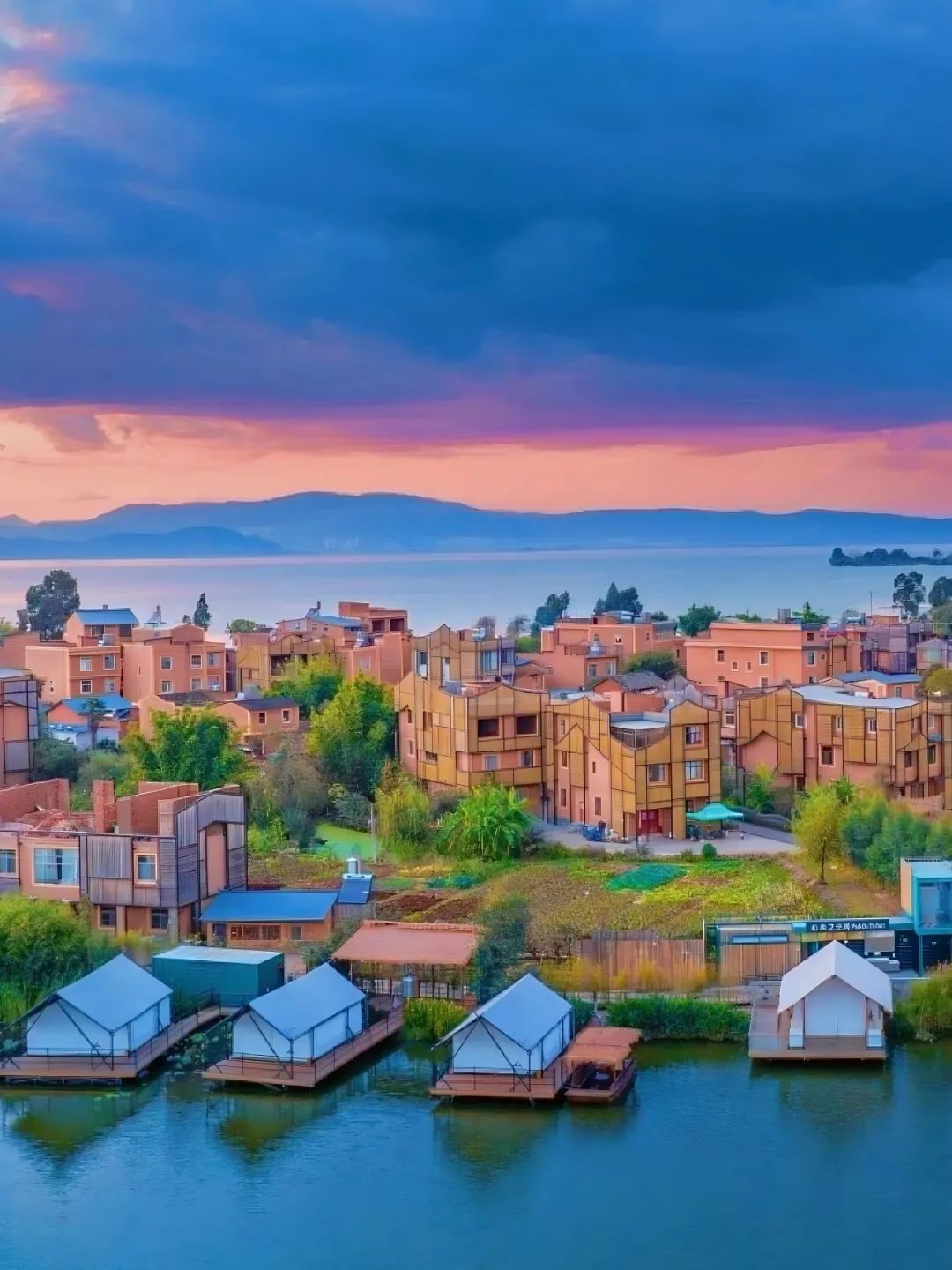 位于滇池南岸灵秀之地,距滇仅百步之遥,在此,可揽湖光、怀古韵,沉醉不知返。一入村,“五百里滇池,奔来眼底”之景赫然眼前;南滇池沙滩与湿地,尽显古韵;“鲸鱼岛”静卧其中,似从诗中走来。