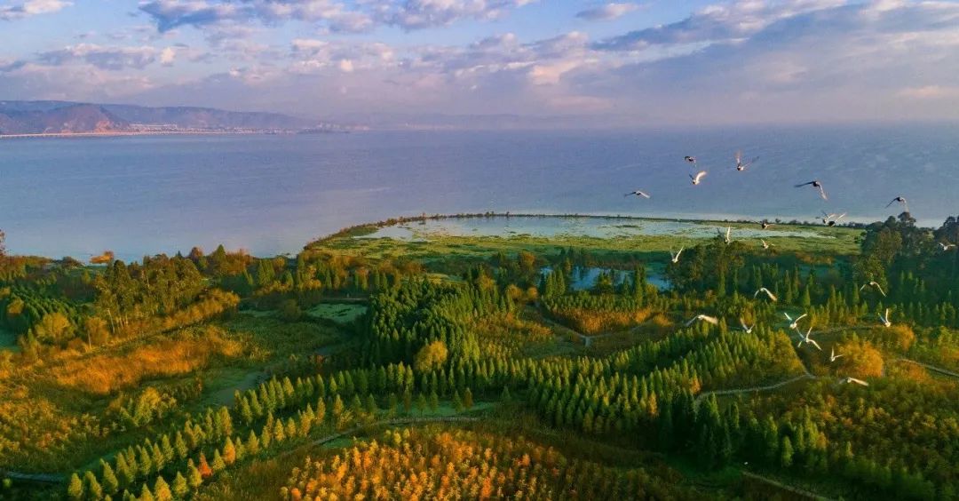 湿地与滇池相连,蓝天、黛山、碧水、绿茵……大自然把调色板遗忘在了这里。走进湿地,无论选择哪一条路线穿行,都能感受到一股温润的风扑面而来,带着花草和泥土的芳香,让人心旷神怡。
