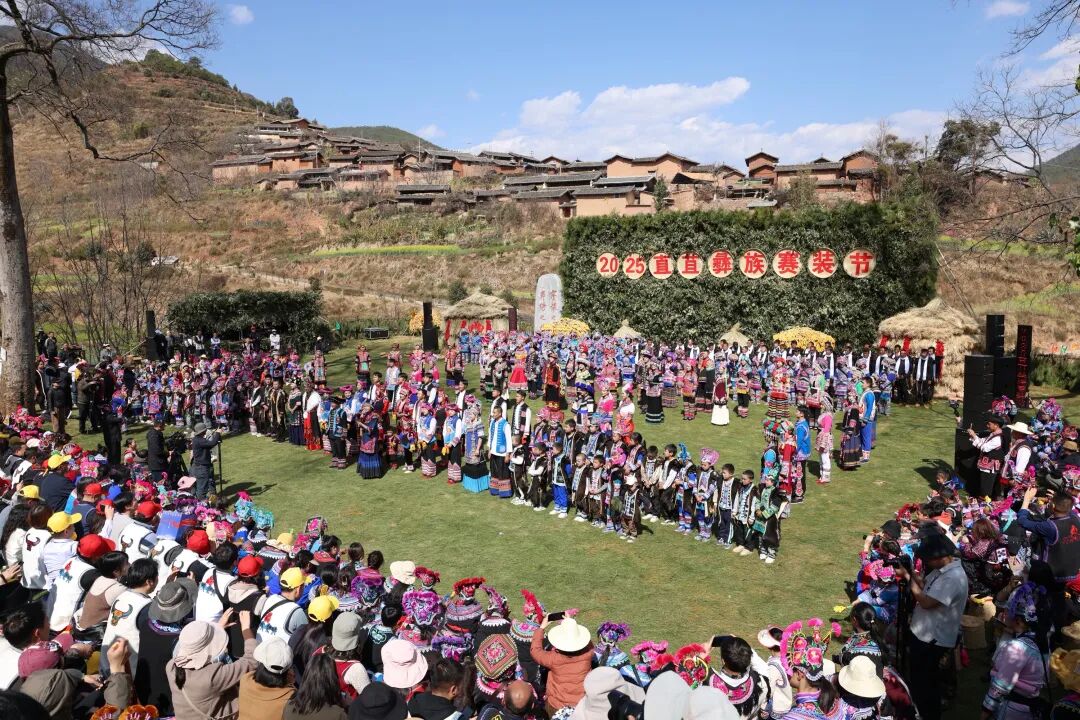 山川秀美映彝裳,赛装盛会聚八方。2月12日,正逢农历正月十五,永仁县中和镇直苴村热闹非凡,附近群众齐聚一堂,共同开展“闹元宵·喜赛装”2025直苴彝族赛装节群众文化活动,前来参加联合国教科文组织非物质文化遗产融入当代时尚设计合作伙伴会议的东亚国家专家、学者一同参与,体验了这场“世界最早的乡村T台秀”。