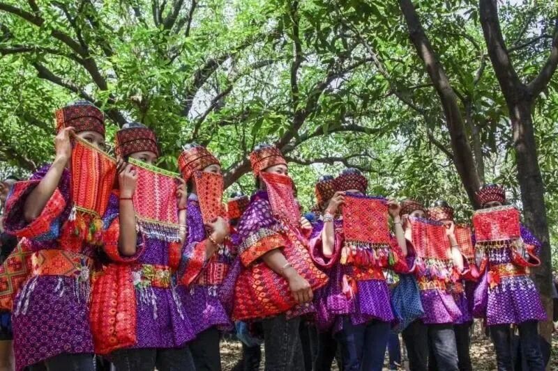 云雾缭绕的哀牢山下,红河与大山绵绵缠绕,形成一个巨大的“Ω”形,随着季节的变化,第一湾所围绕的山丘、植被色彩随季节更替,神采各异,好像花腰傣的彩裙,精彩纷呈。