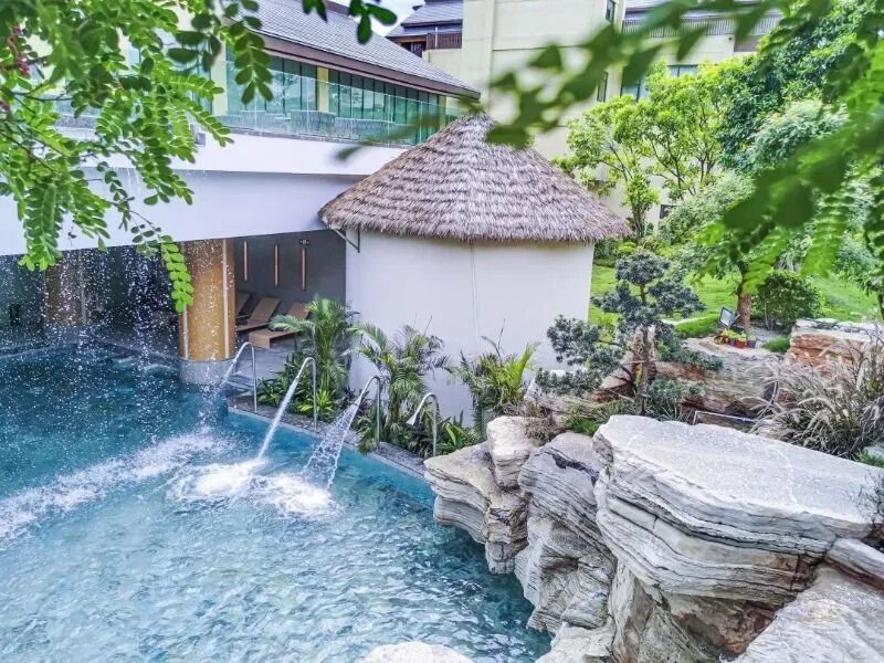 玉溪汇龙温泉文化庄园按五星标准设计装修,集温泉和住宿为一体。庄园拥有露天温泉近40个汤池,星罗棋布,三步一小汤,五步一大汤。细碎的阳光从叶隙洒下,路边长满了多肉的枝干,走累了寻一个汤池泡上一场,神清气爽,心旷神怡。