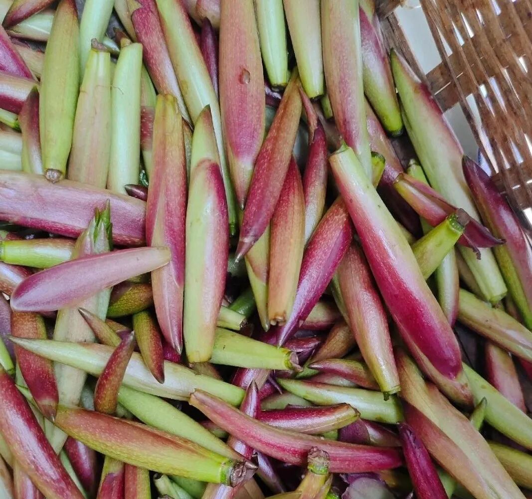棕包花即棕榈树花苞,花色金黄,手掌大小,敦厚如实,是家家户户常备的美食。棕包有的苦,有的甜,在云南尤其常见。可以炒腊肉、炖鸡、煲汤等,色美味香,鲜脆爽口。