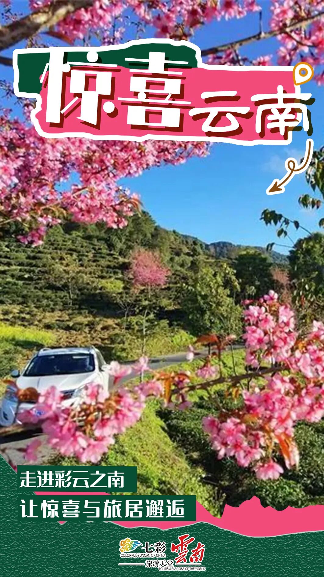 白竹山的万亩茶园,时下春茶吐绿,一派生机勃勃的景象。茶园里,樱花、梨花、野山茶花盛开,粉色、白色、红色的花朵点缀着翠色的茶山,为这浪漫春日增添无数风情。