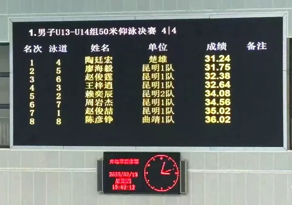 近日,由云南省体育局主办的“2025年云南省青少年游泳冠军赛”中,楚雄技师学院 云南现代职业技术学院组队代表的楚雄州游泳队斩获3金4铜。其中,陶廷宏获男子U13-14岁组50米仰泳、100米仰泳金牌。刘俊宇获50米蛙泳金牌。杨睿获男子U12岁组50米蛙泳、100米蛙泳铜牌。梁穆纭获女子U10岁组50米自由泳铜牌。梁穆纭、郭玉凤、代悦榕、黄艺婷获女子U10岁组4X50米自由泳接力铜牌。斩获21项前八名的佳绩并荣获集体体育道德风尚奖。