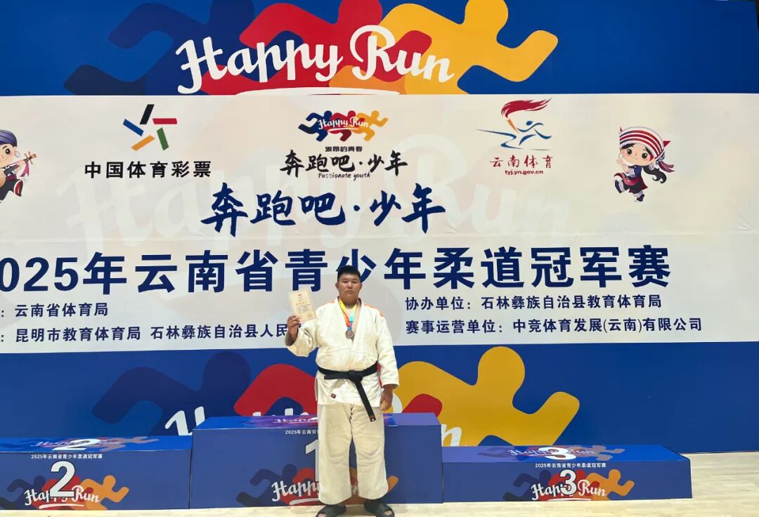 近日,由云南省体育局主办的“2025年云南省青少年柔道冠赛”在昆明石林闭幕,楚雄技师学院 云南现代职业技术学院代表的楚雄州柔道队斩获2银1铜。男子甲组沈一鸣斩获+90KG银牌,男子乙组胡德财斩获-80KG银牌,男子甲组袁斯麒斩获+90KG铜牌,全队斩获7项前八名的佳绩。