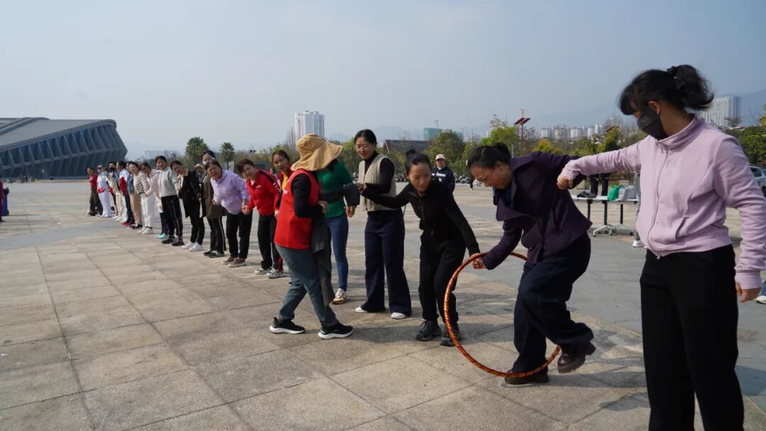 开幕式刚结束,场馆外广场上就一阵欢呼——“趣味运动会”开始了!“一圈到底”环节,20人一队手拉手站成“人墙”,呼啦圈要从头到尾“穿”过每个人。市税务局的女职工们动作麻利,呼啦圈过身,眼看胜利在望,结果最后一位队员一激动,手一松,呼啦圈掉地了!“哎呀!重来重来!”全场笑倒。另一边,市公安局的警花们则化身“战术大师”,边传圈边喊口号:“左边低头!右边抬脚!”最终以30秒完赛,成功拿下“最快女团”称号。