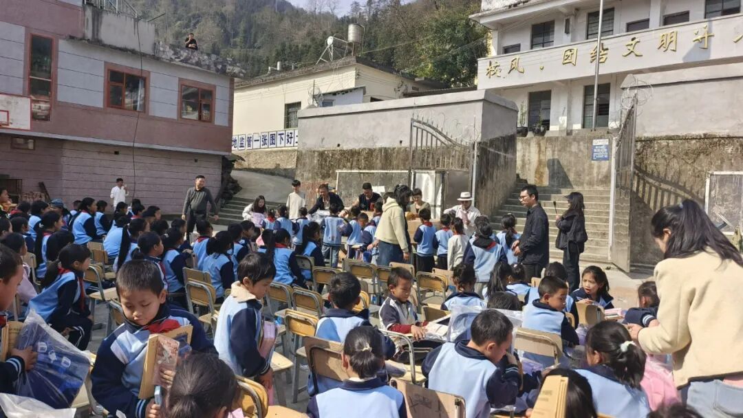 活动最后,到场的嘉宾给孩子们发放了书包、文具袋、尺子、铅笔、篮球等爱心物资,鼓励孩子们加油努力走出大山。