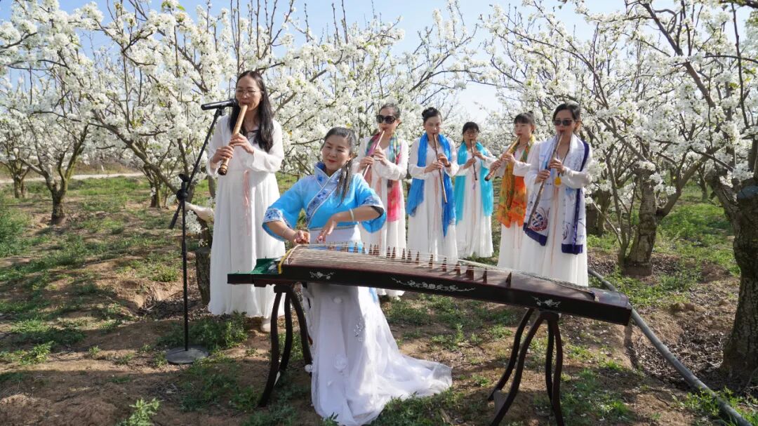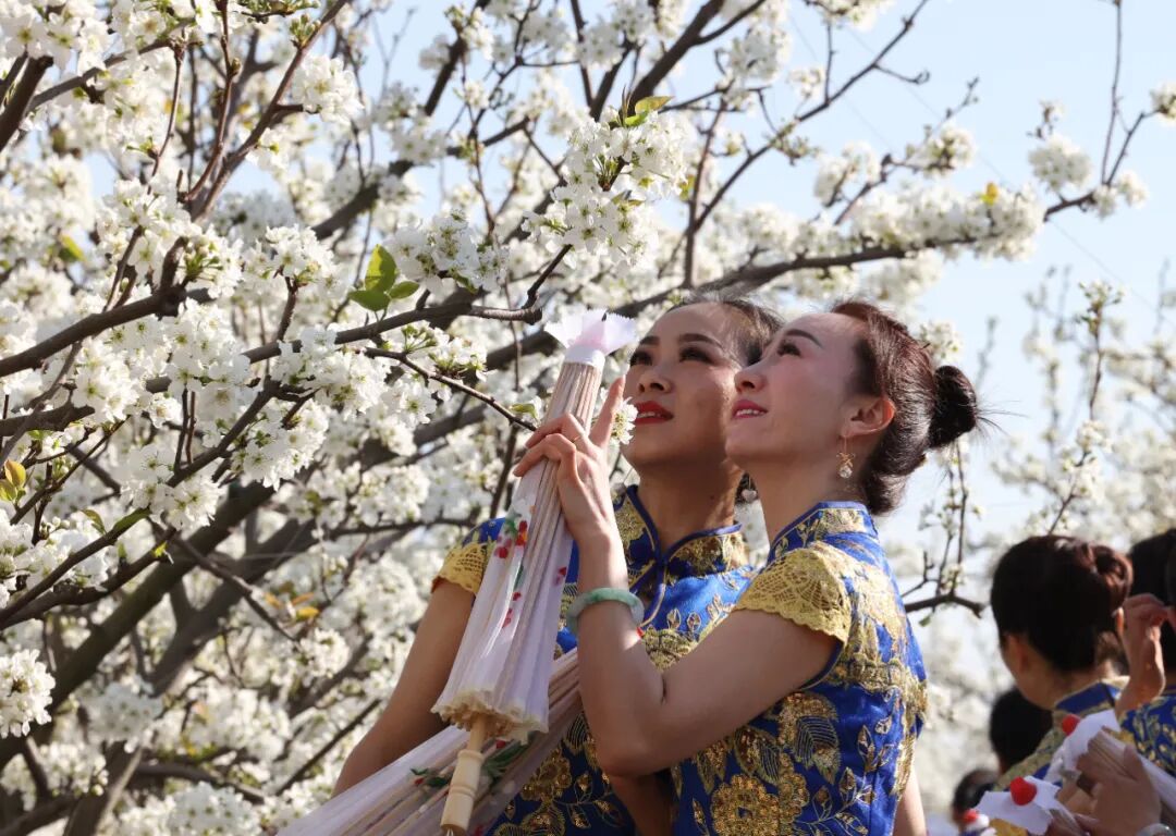 活动内容:汉服小组在梨园内表演和拍摄;文旅达人通过选手形象展示、简单自我介绍、梨花知识问答等环节,评选梨花文旅达人。