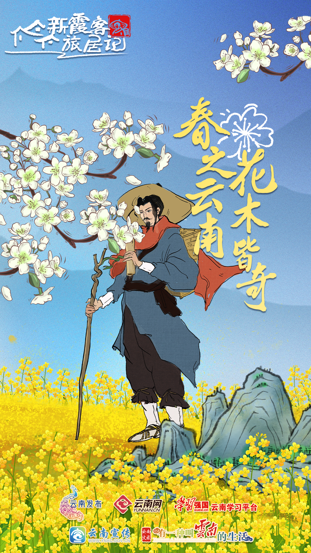 三月的风铃摇醒云岭大地,木棉似火映照如洗碧空,山茶堆锦漫过十八溪。玉龙雪山抖落一身素银,化作潺潺春水,浸润着徐霞客青衫芒鞋上的旧年苔痕。这位400年前的旅人驻足凝眸,苍崖古木间蜿蜒的青石径,已化作高速公路的银灰色绶带;当年马帮铜铃回荡的幽谷,此刻正盛开着重瓣山桃的粉雪。时光如澜沧江的晨雾,将徐霞客的藤杖化为新霞客的登山靴,让我们随着穿越时空的风,与新霞客共同开启一场“始于山水、归于烟火”的美好旅居。