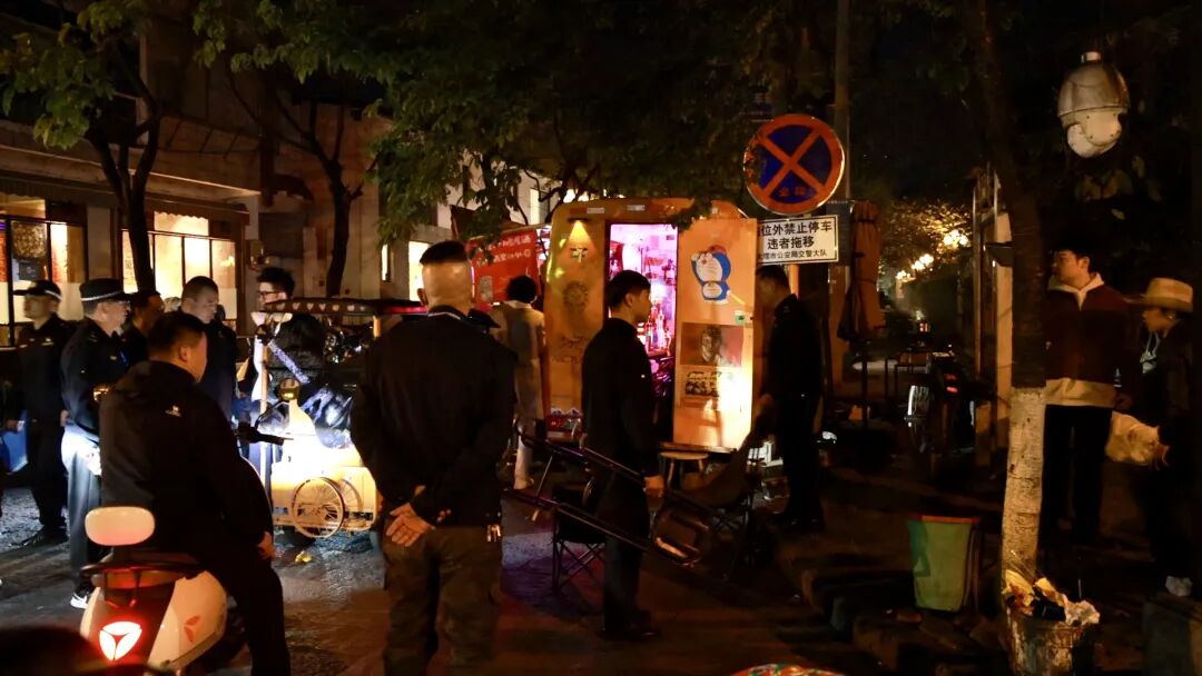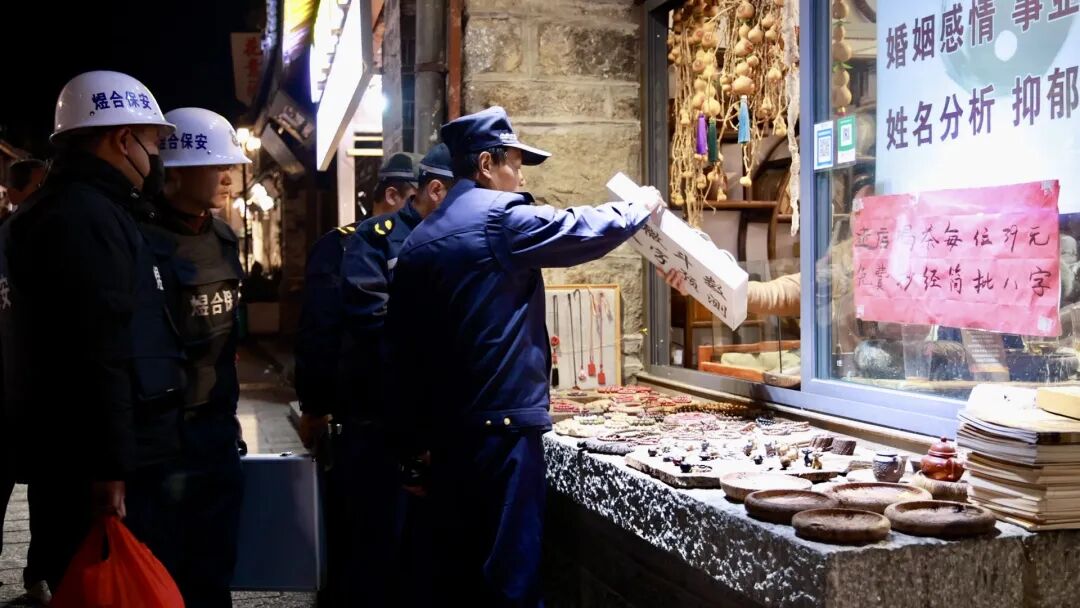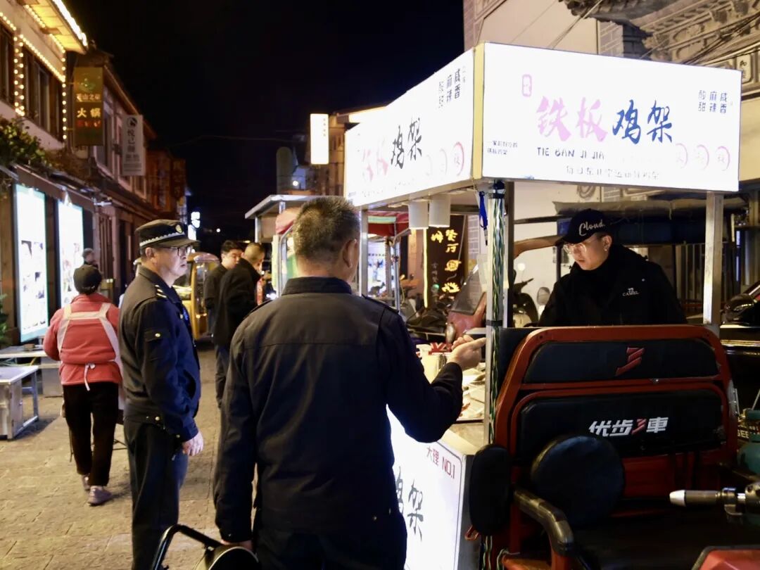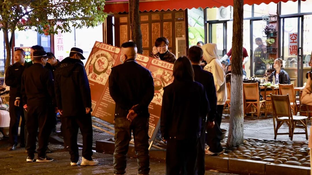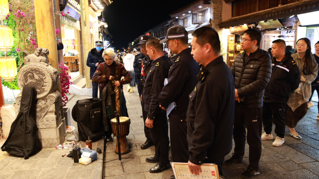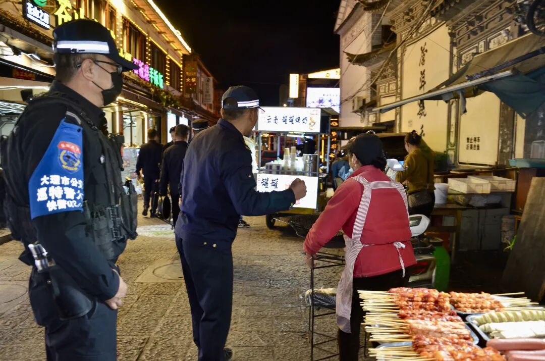 大理市综合行政执法局大理中队工作人员周祥说:“我们有白班和夜班两个班次的工作人员进行执法,白班是上午8点至下午6点,夜班是下午6点至凌晨3点。我们主要对大理古城整体的风貌进行整治,针对占道经营、违规搭建等行为采取一系列措施,依法依规进行正向劝导。”