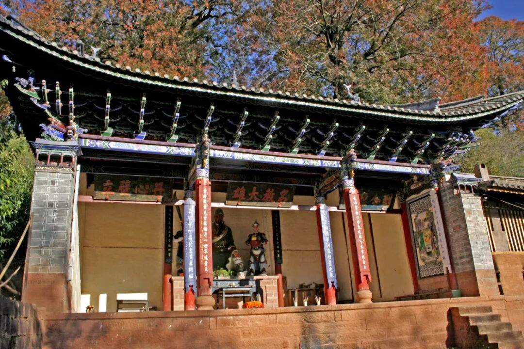 财神殿,盐马古道进入诺邓村第一庙,庙宇如坐椅中,倚崖向北,面对村庄,财神殿所处石崖系诺邓南山左臂前抱,因山取势,势若咽喉,象征财源滚滚,但不外流。
