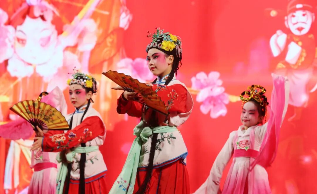 (昆明市五华区文林小学学生滇剧团开展演出。杨峥 摄)