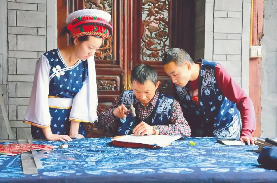 (国家级非遗代表性项目白族扎染技艺省级代表性传承人段树坤教授徒弟扎染技艺。高吴双 孙欣玥 摄)