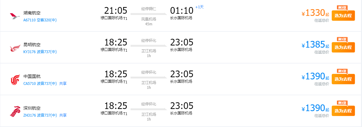 从行程看,从杭州至昆明出发时查询的往返机票价格最低为1330元。