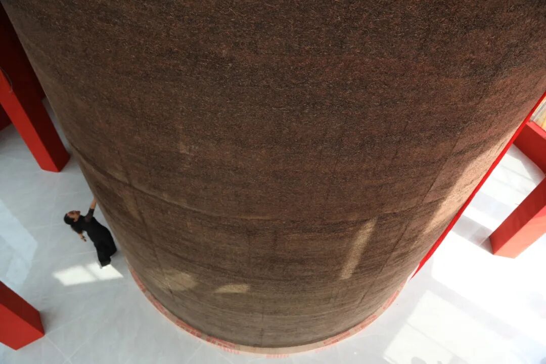 体积惊人:高6.6米,直径5.82米,底面周长18.2米,约等于两层半楼高,需14名成年人环抱,体积达175.49立方米。