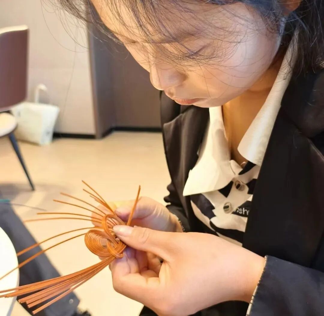 实践环节中,竹编匠人们分组完成竹编创作:有的将服饰穿搭元素融入竹编作品,打造“可穿戴的非遗”;有的尝试竹编与茶文化相结合,制作竹编茶具套组;通过创新,编制出融合现代生活需求与临沧特色文化相结合的竹编产品,让竹编以“轻量化、场景化”的姿态走进现代生活。并通过探寻线上线下宣传销售等方式,让世界看见临沧竹编的温度。