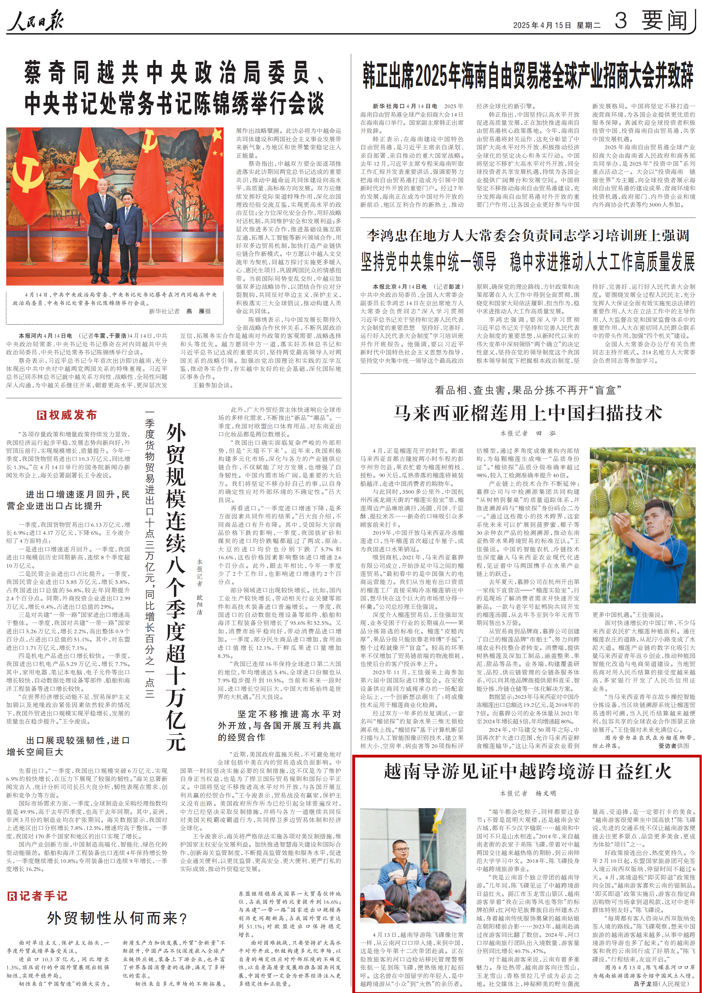 “我是云南首个独立带团的越南导游。”几年间,陈飞碟见证了中越跨境游日益红火。丽江市玉龙雪山景区,越南游客举着“我在云南等风也等你”的标牌拍照;红河哈尼族彝族自治州建水古城,身着越南传统服饰奥黛的越南姑娘在朝阳楼前合影……2023年,越南赴滇过夜游客同比翻了数倍。2024年,河口口岸越南旅行团队出入境数量、游客量分别同比增长40.7%、47%。