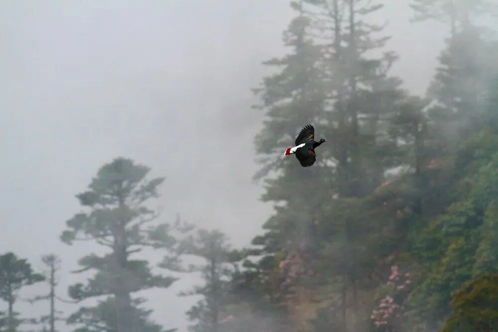 在这里,你或能看到被誉为“雪山飞虹”的白尾梢虹雉闲庭踱步,漫步于高山之巅。或惊鸿一瞥,看到它飞翔在密林之间。